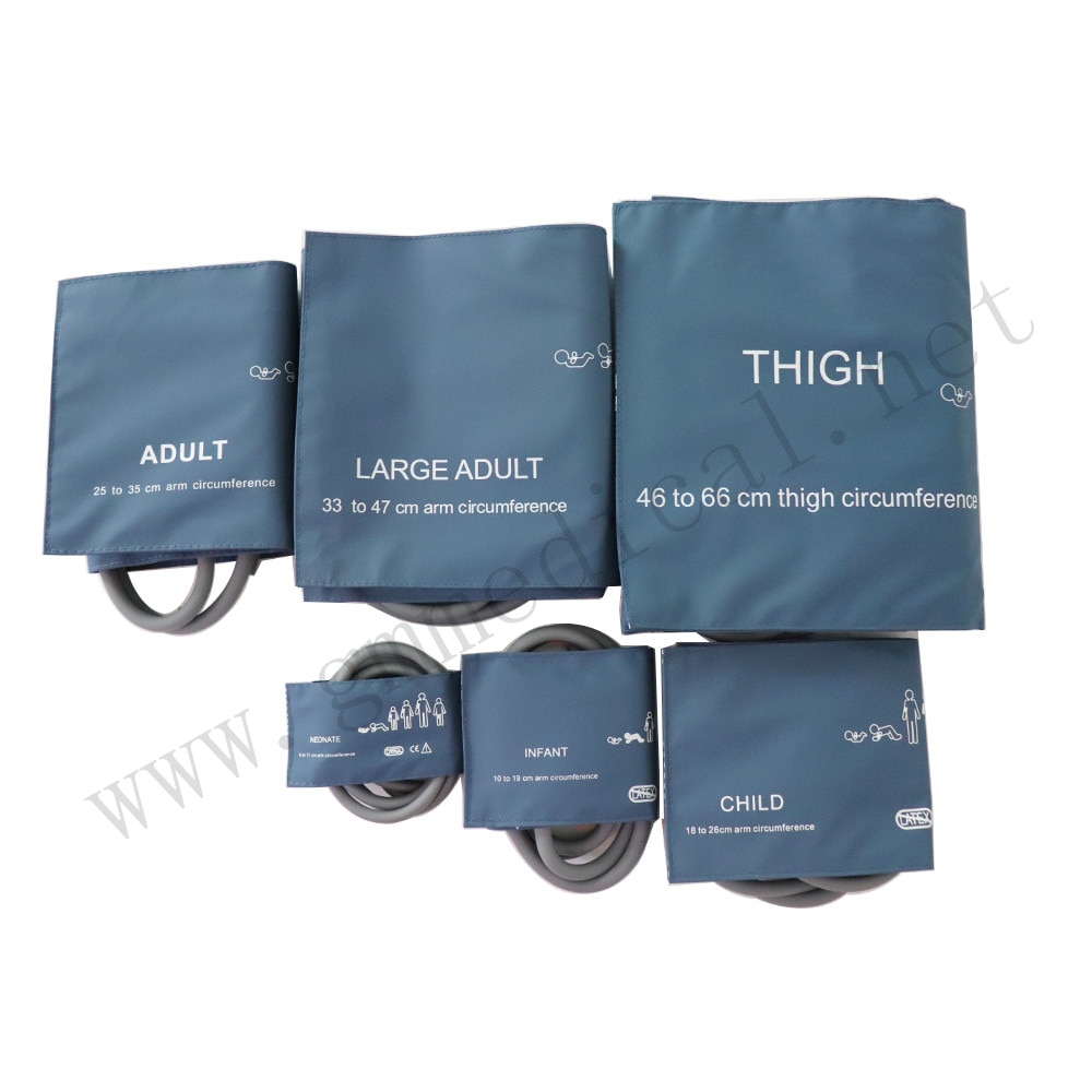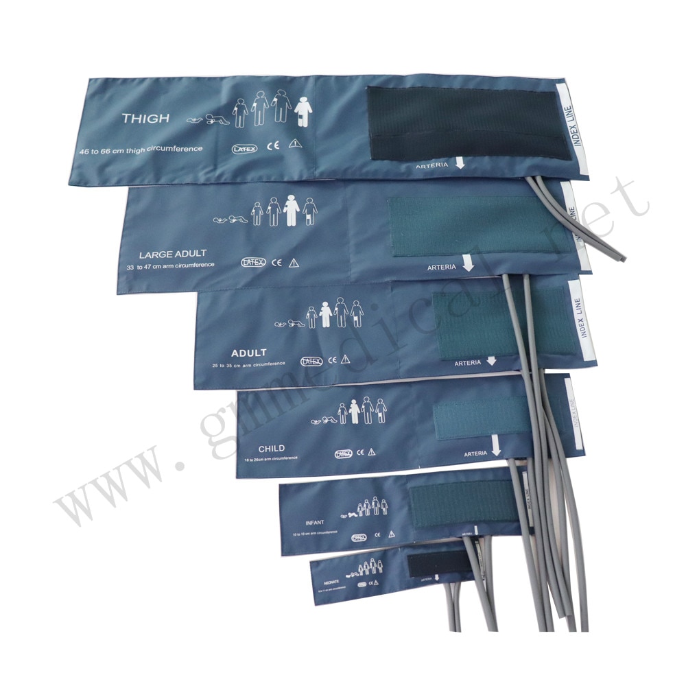 CF004TF-B: Hnyav mos Dual raj NIBP Cuff, 46-66cm Caj npab Circumference, Xiav