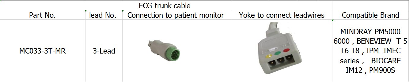 Cim npe nrov: ecg cable 3-txhuas lub cev cable rau beneview t5 t6 t8, biocare im12, pm900s, Suav teb, cov chaw tsim khoom, lag luam, customized, bulk, yuav luv nqi, nqi qis, zoo siab