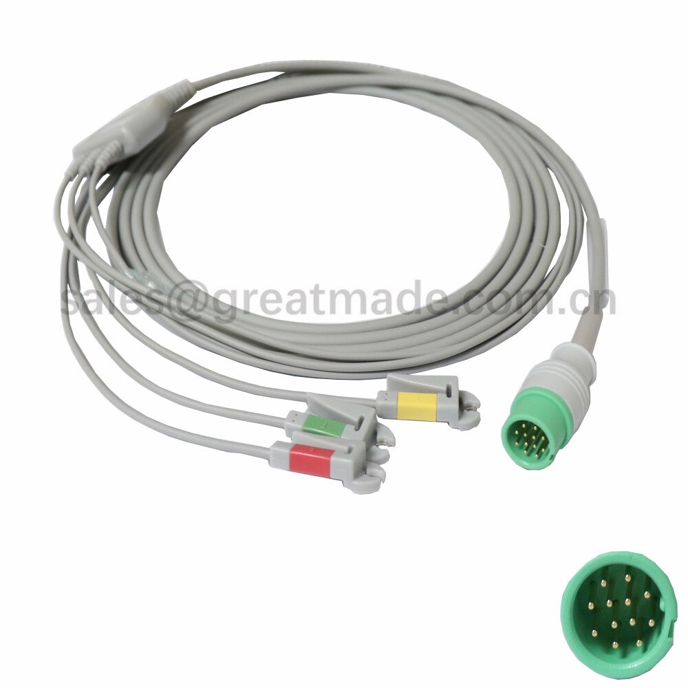 Cim npe nrov: tshaj biolight a3, a5, a6, a8, q5 ecg cable nrog leadwiresie. iec, 3-txhuas, txhom puab, ntsuab 12pin, Suav teb, manufacturers, lag luam, customized, bulk, yuav luv nqi, nqi qis, zoo siab