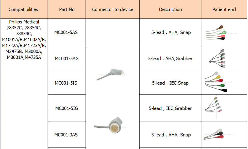 (2). Tus neeg mob saib xyuas ECG cable thiab leadwires
